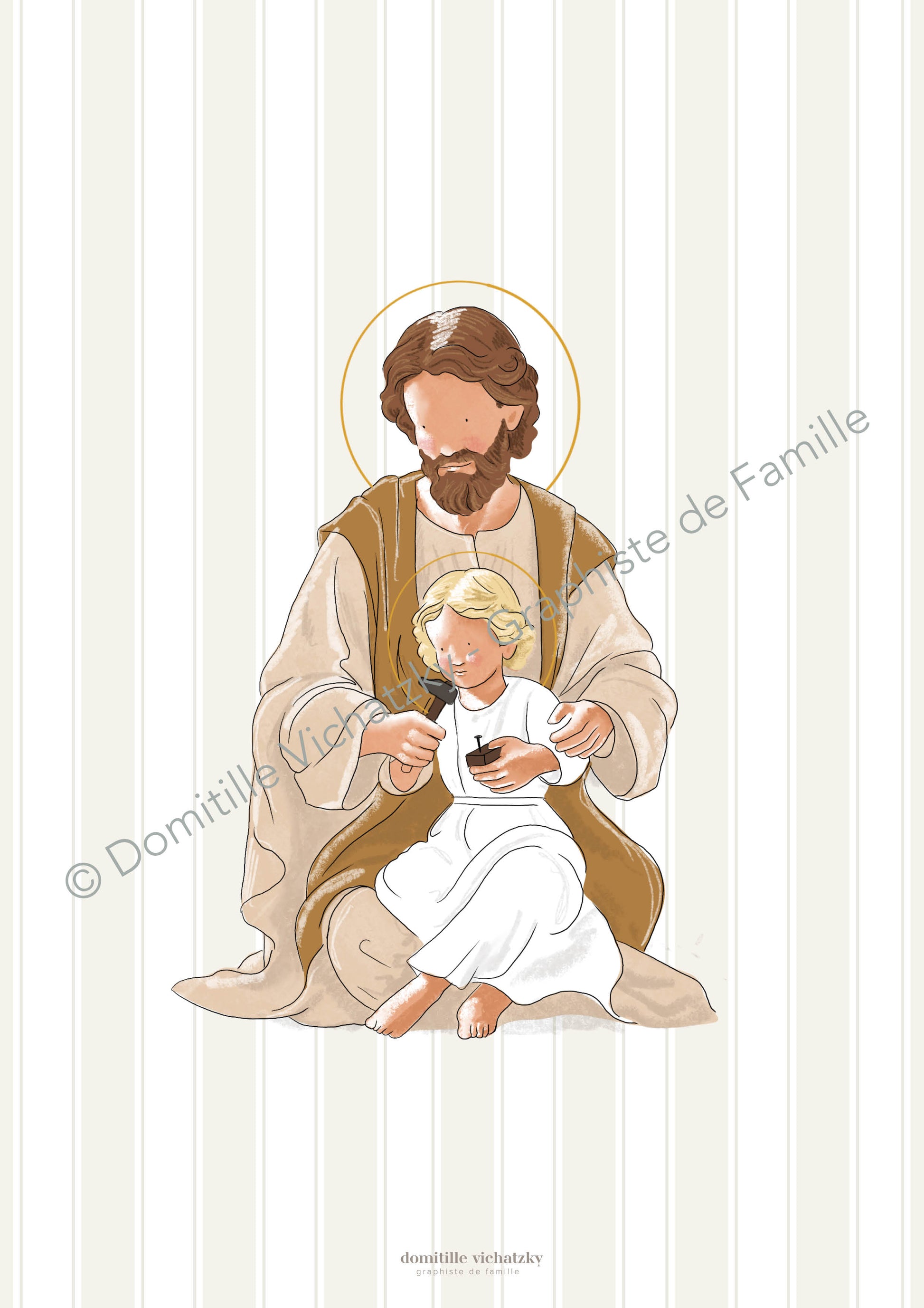 Affiche Enfant Jésus et Saint Joseph – Illustration murale pour chambre d’enfant