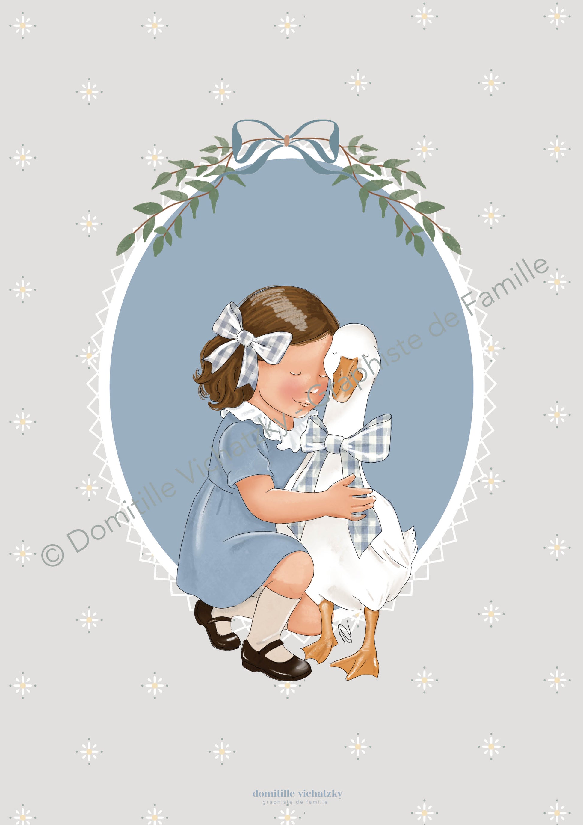 Affiche Petite Fille et son Oie – Illustration murale pour chambre d’enfant