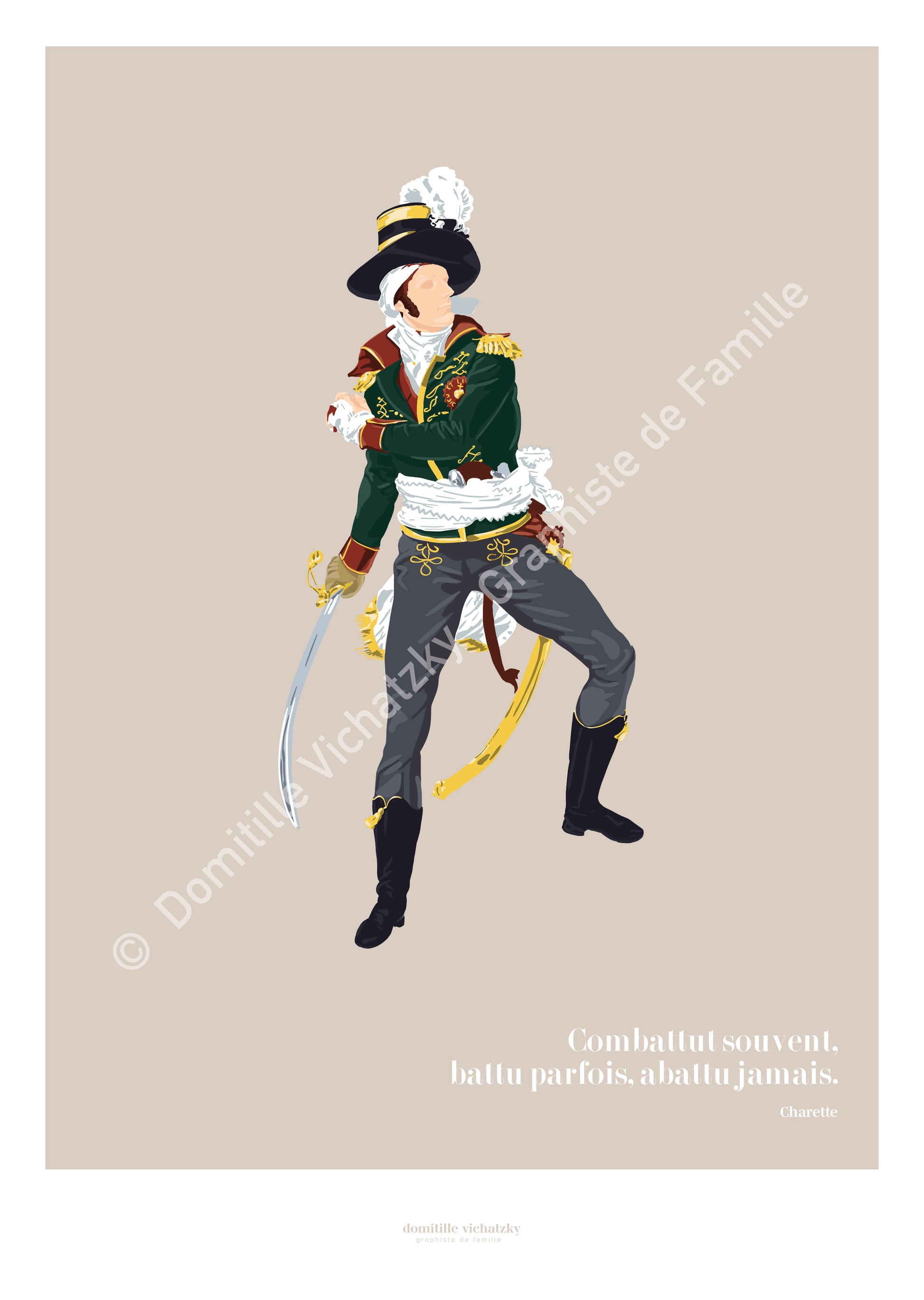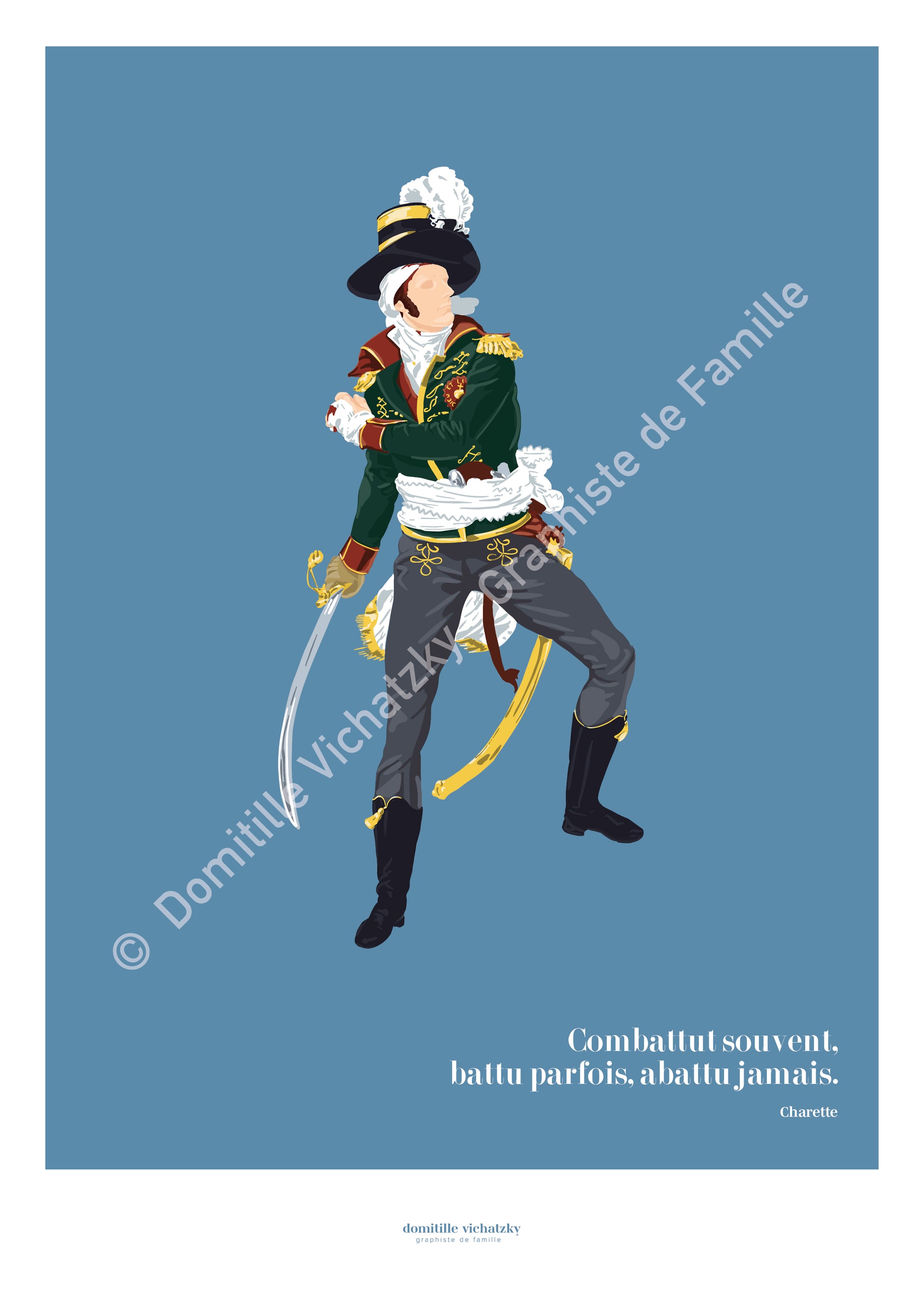 Rendez hommage à l’histoire avec cette collection d’affiches illustrées consacrée aux grands généraux vendéens. Ces créations originales mettent en lumière dix figures emblématiques des Guerres de Vendée : Charrette, La Rochejaquelein, Stofflet, d’Elbée, Lescure, Bonchamps, Cathelineau, Prince de Talmont, Cadoudal et Sapinaud.