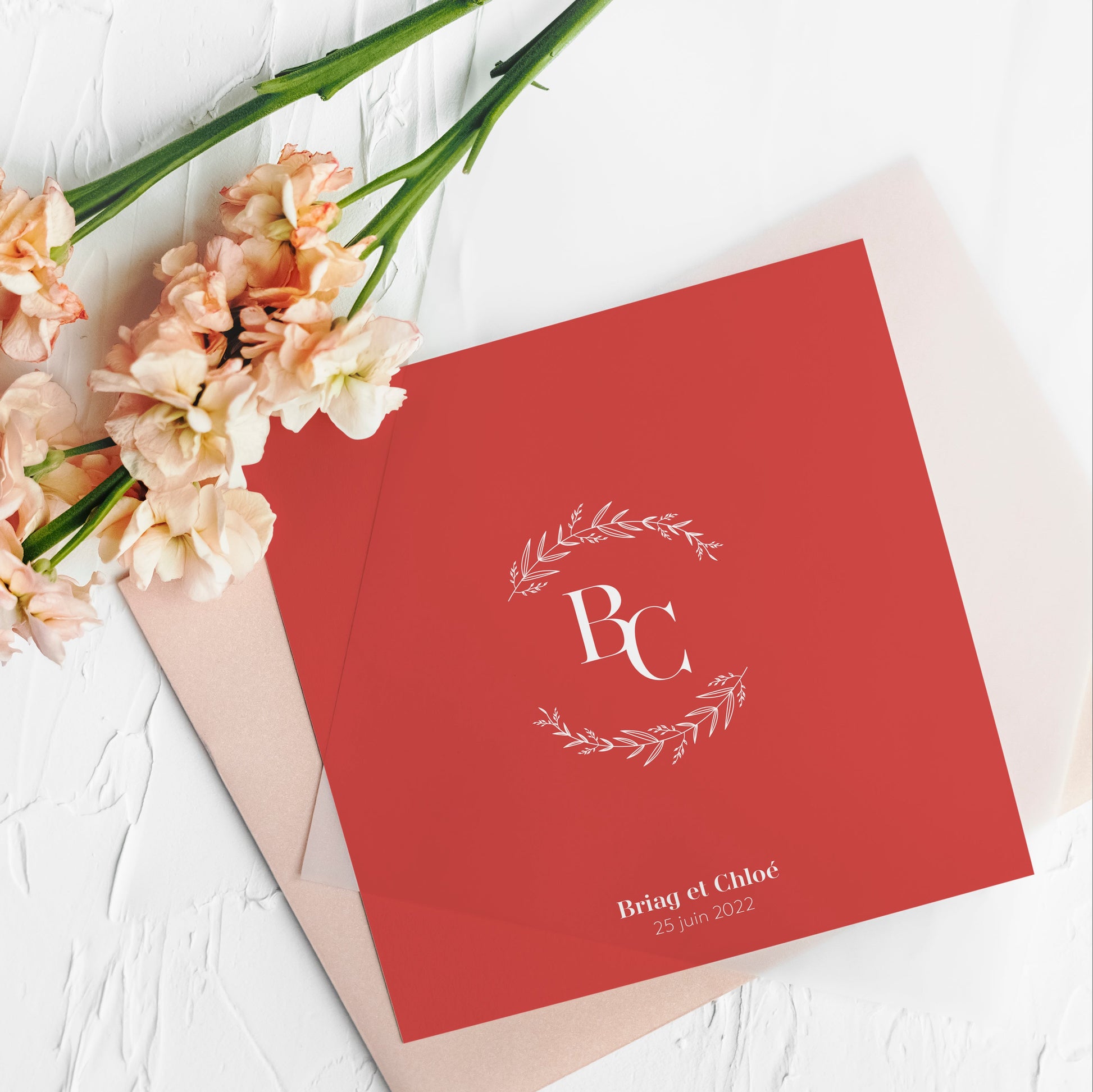 Faire-part de mariage carré initial