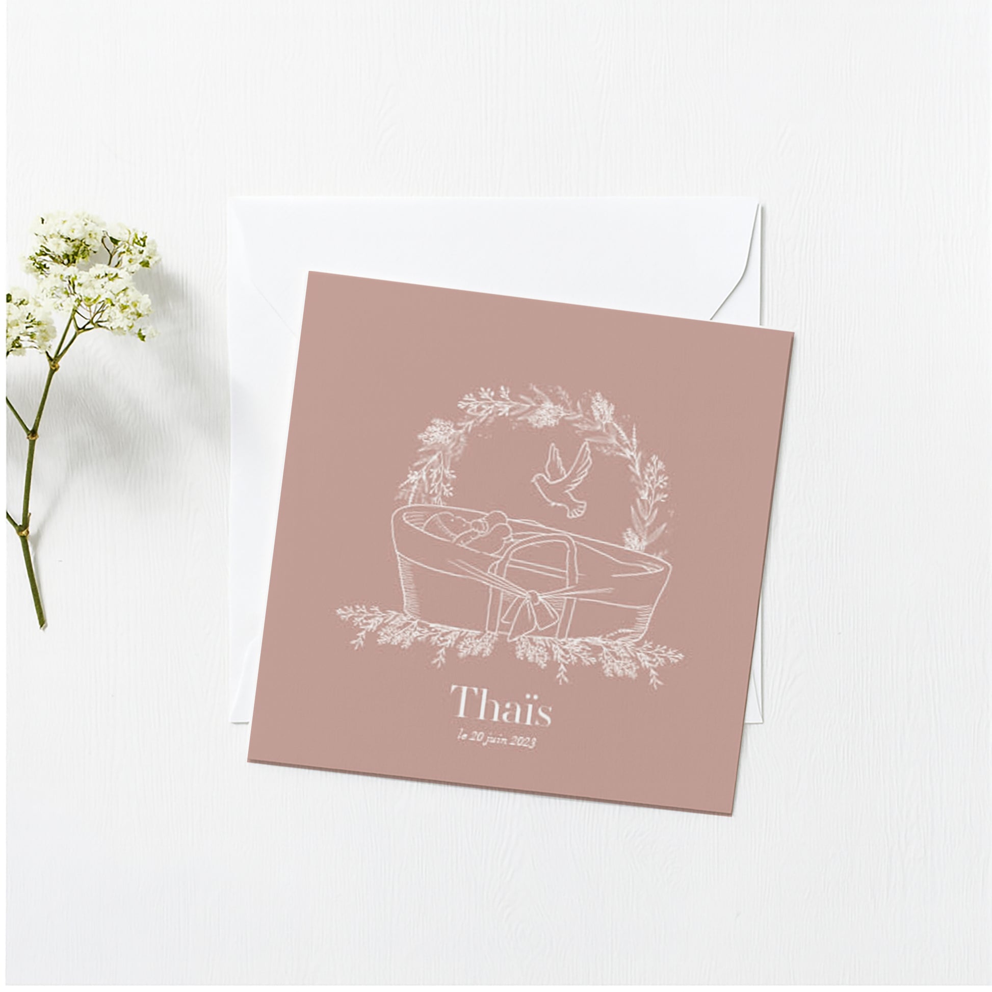 Faire-part carré personnalisé – recto/verso 13 x 13 cm avec enveloppes incluses